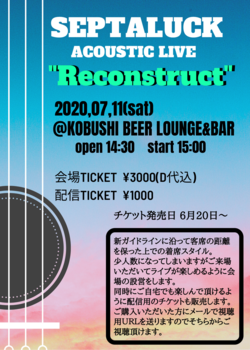 SEPTALUCK久しぶりのライブはアコースティックセット、TOMOYA(Gt) coro(Dr)と3人編成で、チケットの発売が開始になりました。