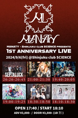 MANATY × Shinjuku club SCIENCE presents 1ST ANNIVERSARY LIVE出演決定!!