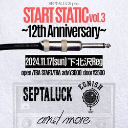 11/17(sun)下北沢ReG にて開催の企画 12th Anniversary START STATIC vol.3 第一弾ゲスト EGNISH が出演決定!! チケット予約は21時から開始です! 詳細はLIVEにて