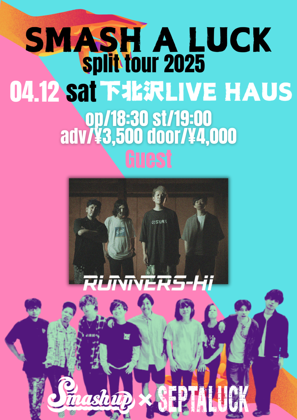 4月12日に下北沢LIVE HAUSで開催されるスプリットツアーファイナル Runners-Hiをゲストに迎えて開催します! チケット予約も開始!! 皆さんのご来場お待ちしています!