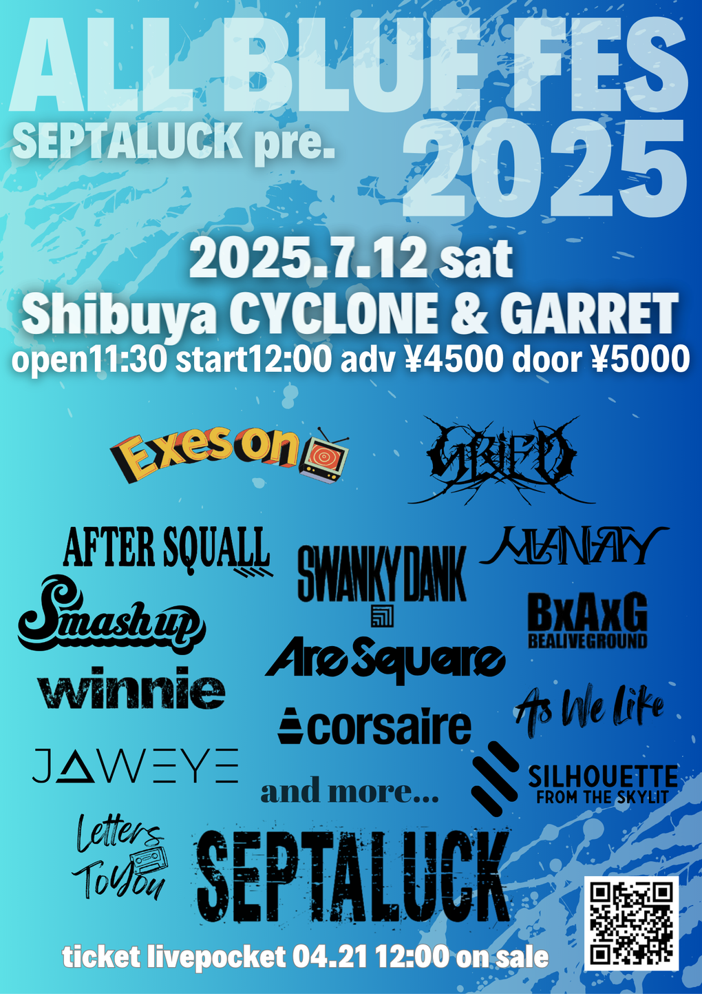 7月12日(土)渋谷CYCLONE&GARRETで開催される「ALL BLUE FES 2025」の出演者第二弾が解禁!!