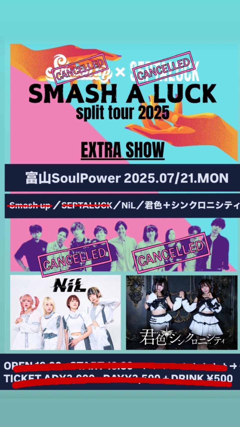 7月21日富山SOUL POWERにて開催予定の《SMASH A LUCK TOUR 2025》ですが、SEPTALUCKメンバー複数に